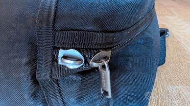 Ottime condizioni tranne che per la cerniera della tasca superiore che presenta il cursore rotto, si può sostituire con uno in merceria da 2 euro.La cerniera principale che chiude la tastiera è perfetta!Dimensioni esterne approssimative 1100mm 200mm 460mm