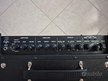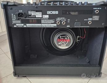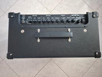 Vendo Amplificatore combo per chitarra elettrica, praticamente nuovo, comprato a ottobre 2025, vendo per passaggio ad altre catgorie, sono presenti ancora tutti i documenti e la garanzia, sempre tenuto in casa, mai in luoghi polverosi e sempre tenuto pulito, l'amplificatore ha 50 watt e la possibilità di ridurre la potenza a 25w o 0.5w, si puo rendere una cassa attiva e quindi annullare il pannello superiore, si può usare con le cuffie, il cono è da 13, ha una moltitudine di effetti integrati Boss e la possibilità di cambiare la tipologia di canale dell'input, è molto versatile e suona molto bene, ottimo sia per principianti che per chi gia suona e vuole qualcosa non troppo estremo,