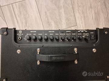 Ampli combo da 50-watt altoparlante custom da 12” Cinquecaratteri sonori: Clean, Crunch, Lead, Brown (derivato dall’ampli Waza), e Acoustic (per le chitarre acustiche elettrificate) opzioni di collegamento personalizzabili con l’editor software BOSS Tone Studio Controlli dedicati per Gain, EQ, ed effetti, per un’immediata regolazione del suono Quattro memorie Tone Setting per salvare e richiamare tutte le impostazioni dell’amplificatore e degli effetti. Numerose altre funzioni. Ampli in peffette condizioni qualsiasi prova.