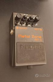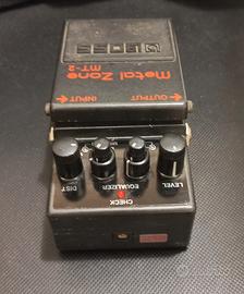 Pedale Distorsore Boss Metal zone Mt-2, EQ 3-bande con controllo Mid semi-parametrico offre una vasta gamma di distorsioni estreme,perfettamente funzionante,esteticamente ha qualche graffio ai lati,dovuto a l'utilizzo,Alimentazione con batteria a 9 v o alimentatore Psa (non in inclusi),spedisco con scatola originale.