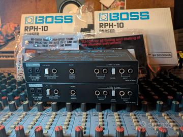Vendo coppia di phaser BOSS serie micro rack. Ben tenuti, praticamente nuovi (la macchina che si vede sul phaser a dx è la colla di vecchio adesivo). Perfettamente funzionanti, si vendono solo a coppia. Con scatole originali e depliant dell'epoca.