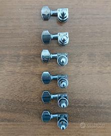 Vendo lotto parti per chitarra elettrica – ricambi compatibili Ibanez JEM Jr (White Pearl) Il 90% del lotto è stato smontato appena comprata la chitarra per upgrade sulla stessa. Qui c'è tutto (o quasi) quello che serve per ricostruire o personalizzare una Ibanez JEM Junior (configurazione HSH) Contenuto del lotto: Pickup HSH Quantum con cablaggi puliti e pronti all’uso. Battipenna bianco Ibanez (White Pearl) di ricambio. Meccaniche Ibanez complete per 6 corde. Hardware tremolo completo (ponte + 4 molle + leva tremolo + artiglio molle + viti di fulcro) in colorazione chrome. Capotasto in colorazione Gold. Bloccacorde: uno in colorazione chrome e uno in colorazione gold. Cover truss rod + cover molle + cover jack uscita per Jem Jr in White Pearl Manopola tono in colorazione gold con cabochon pearloid sintetico Manopola volume in colorazione gold con cabochon pearloid sintetico Tutta la viteria e brugole necessarie per il montaggio. Tutto perfetto per restaurare una JEM Jr, costruire un progetto personalizzato o aggiornare un hardware. Spedizione a carico mio. Modalità di pagamento da decidere in privato.