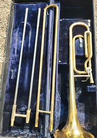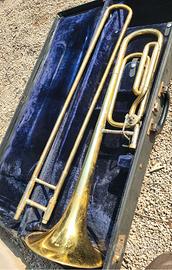 TROMBONE APPENA REVISIONATO E PERFETTAMENTE FUNZIONANTE, ANCHE LA COULISSE SCORRE SENZA IL MINIMO ATTRITO. CUSTODIA CONN ORIGINALE.