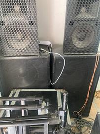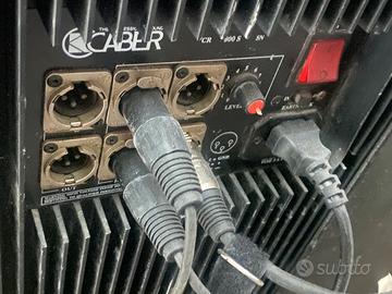 Causa inutilizzo vendo coppia di sub attivi della Caber, con due 18” ogni cassa. I sub sono dotati di finali caber da 2400W e dispongono di crossover elettronico interno, uscite xlr per satelliti già filtrate, uscite xlr bypass e controllo livelli volume. Dato il peso e gli ingombri è preferibile il ritiro a domicilio. Il prezzo è riferito alla coppia e non si vende singola. Come bose, rcf, fbt, ciare, nexo, array….