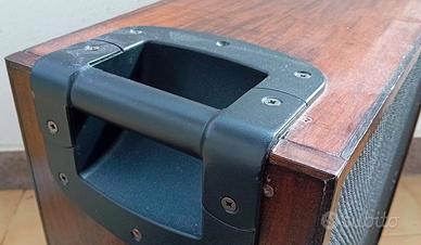 Cabinet per cono speaker chitarra o woofer basso. Auto-costruito in legno impiallacciato noce con finitura a cera, struttura interna in multistrato. Pannelli posteriori rimovibili. Predisposto per speaker Celestion da 12" e presa jack da 19mm Neutrik NJ3 (non compresi nell'offerta), facilmente adattabile ad altre esigenze. Maniglioni, angoli e griglia speaker (doppia) Adam Hall. Dimensioni: 48 x 46 x 24 cm (l x h x p), peso circa 10Kg. Solo struttura come visibile nelle foto. Ritiro a mano zona Roma Eur GRA.