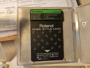 5 card Roland con differenti stili/canzoni, totalmente funzionanti, codice TN-SC2 card 1, 2, 3, 4 e 7, x Roland RA90, E70, E35, KR3500, ecc. Complete delle sue custodie