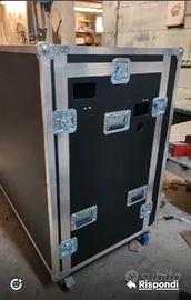 Case maxi formato cablato, con postazione tv fino a 55 pollici, mixer, dmx, microfoni. Adatto per tutti coloro che vogliono avere la comodità di portare tutto in un unico case. NUOVO mai usato! Realizzato artigianalmente con ottimi materiali e provvisto di tuote per trasporto facilitato.