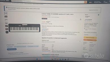 Vendo tastiera da 61 tasti CASIO TONE CT-S200BK, NUOVA, MAI APERTA, ancora SIGILLATA nella CONFEZIONE originale Amazon.