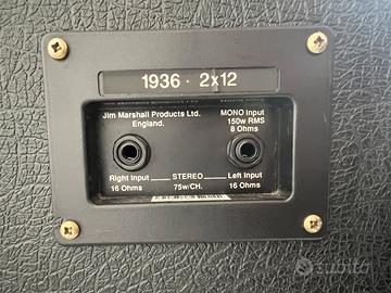 Vendo cassa Marshall 2x12 modello jcm 900 1936. Vendo esclusivamente per sfoltimento strumentazione… La cassa non presenta né crepe né graffi ha solo come si vede nella foto la tela un pò sbiadita dal tempo. Possibilità di prova presso sala prove privata.