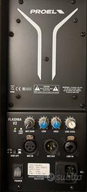 Vendo cassa attiva 2 vie 8”/1” Proel FlashV8 A2 in ottime condizioni, utilizzata esclusivamente come spia, quindi mai sfruttata ad alti volumi come impianto principale e sempre con la massima cura. Tenuta sempre in ambiente asciutto, funziona perfettamente. CARATTERISTICHE PRINCIPALI: Potenza: 300 W RMS Woofer da 8" Ingressi multipli (microfono/linea) Misure: 270x420x260 mm Peso: 8,5 kg circa Struttura leggera e resistente Suono potente e pulito, leggera e facile da trasportare. Per qualsiasi informazione o prova, contattami senza problemi