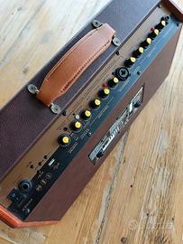 Audio design pro Ottimo anche come cassa bluetooth, finitura di pregio. Di seguito le caratteristiche: Portatile a batteria agli Ioni di Litio (durata di funzionamento 8-10 ore). Ingresso bilanciato per chitarra acustica Ingresso sbilanciato per chitarra elettrica, tastiere o microfono Regolazione bassi, medi e alti e 6 effetti sui due ingressi principali PAD -10 dB sul livello degli ingressi Jack e combo. Ingresso mini jack stereo 3,5 mm per una sorgente esterna PC, smartphone, tablet o lettore MP3 Bluetooth per collegarsi a un computer portatile, smartphone, tablet o lettore MP3. Lettore USB per file musicali in formato MP3 e WAV. Registrazione su chiavetta USB in formato Mp3. 5 Preset di suono sul lettore USB o sulla connessione Bluetooth Possibilità di alimentare un pedale multieffetto, un mixer o uno smartphone tramite la presa USB Connessione Jack per un pedale supplementare (non fornito) per cambiare gli effetti. Dimensioni: 47 x 25 x 23 cm Peso: 6.25 kg