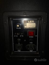 Vendo cassa LEM LX150 attiva singola, PREZZO TRATTABILE.. 150w rms con circa il doppio di picco. A doppia via con woofer da 15". Attiva con ingressi Jack grande 6,3 e XLR. Vendo per passaggio ad attrezzatura superiore, la cassa non è mai stata sforzata dato il mio solo utilizzo in casa e la sua elevata potenza. Sono presenti 2 piccole imperfezioni visibili nella quinta foto. Preferisco ritiro a mano o consegna per Napoli e provincia (fino ad una certa zona) ma posso anche spedire, prezzo della spedizione varia in base alla zona, quindi da vedere. Disponibili ulteriori foto e video su richiesta.
