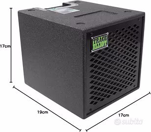 CASSA PER BASSO 10" 300W Il cabinet Trace Elliot ELF 1x10 ha le caratteristiche che il moderno bassista cerca. Il compagno perfetto per il rivoluzionario amplificatore Trace Elliot ELF da 200W rms, il cabinet 1x10 utilizza un driver Eminence premium e due ingressi paralleli che semplificano l'utilizzo di due cabinet con l'ELF. La resistente cabina verniciata dispone anche di una maniglia superiore integrata che è utile quando si fanno passare i cavi degli altoparlanti. Caratteristiche Deflettore angolato 1x Driver full-range al neodimio ad alta efficienza da 10", 8 Ohm Potenza gestibile di 300W (rms) Cabinet resistente verniciato Doppio jack di ingresso combo Speakon/Phono in parallelo Impugnatura superiore incassata Culla incorporata per l'amplificatore per basso ELF Griglia metallica resistente Dimensioni: 305 x 317 x 356mm Peso: 7,35kg