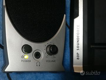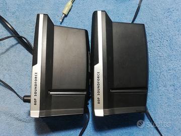 Coppia di Casse amplificate modello Trust 80P soundforce con cavo connettore cuffia piccolo standard 2 vie.