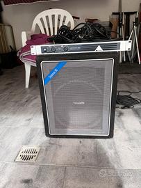 Come da titolo vendo 2 casse non amplificate community CS25 come nuove, utilizzate pochissimo, qualche piccolo solo qualche segno dovuto al tempo, potenza 100watt ognuna programmate per 250watt con cavi originali lunghi 10M (del valore di 30€ ciascuno) incluse nel prezzo le 2 piantane.