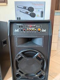 Vendo casse musicali molto potenti limited edicion con i relativi 3 microfoni. Casse usate sempre con prudenza, ottime per feste private, compleanni ecc..
