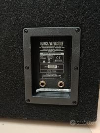Vendo due casse mute Beringher Euro live VS 1220 F come da foto e amplificatore Euro Power 2000. il tutto non è mai stato usato perché per la ns attività troppo ingombrante e soprattutto pesante. (mi occupo di Musicoterapia.) Prezzo trattabile