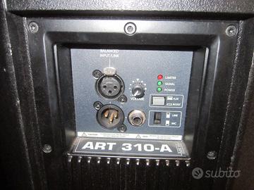 RCF ART 310-A MK4(((( TEL 3510554186 )))) = Diffusore attivo per applicazioni dal vivo e stage monitoring, impianti audio musicali -- amplificazione vocale. RCF ART 315-A MK4 è il diffusore full-range per tutte le occasioni, con un'eccellente riproduzione dei bassi e un'accurata riproduzione delle alte frequenze. Con le seguente caratteristiche==Risposta in frequenza: 50 Hz ÷ 20000 Hz--SPL MAX a 1m: 127 Db--Angolo copertura orizzontale: 90°-wofer: 10", 2.5" v.C- Connettori ingresso: XLR, Jack--rotezioni: Thermal, RMS--Limiter: Soft limiter--Controlli: Volume, boost, mic/line-Potenza totale: 800 W peak, 400 W RMS-Alte frequenze: 200 W peak, 100 W RMS-Basse frequenze: 600 W peak, 300 W RMS-Raffreddamento: Convezione-Connessioni: VDE-Marcatura CE: Si-Materiale cabinet/case: PP composite-Hardware: 4 x m10-Maniglie: 1 top, 2 side-Montaggio su palo: Si-Colore: Nero LE CASSE SONO IN OTTIME CONDIZIONI SONO IN VENDITA IN QUANTO IL PROPRIETARIO SI E TRASFERITO ALL ESTERO … IL PREZZO E 530 EURO INTTRATTABILE LA COPPIA EVITATE RICHIESTA DI SINGOLA CASSA SPEDIZIONE E CONSEGNA IN TUTTA LA CAMPANIA GRATIS PER MAGGIORI INFORMAZIONI CHIAMATE AL (((( TEL 3510554186 )))
