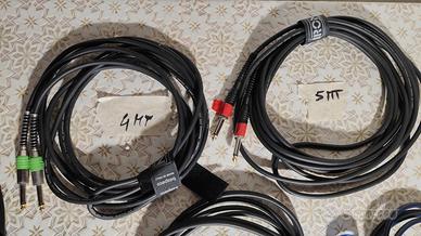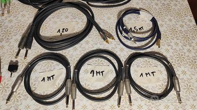 11 cavi audio per musica: 1 cavo bespeco da 9 metri connettore Jack da 6,35 mm (1/4") maschio da un lato e connettore XLR maschio dall'altro. per "microfono" bilanciato 1 cavo da 5 MT jack jack mono da 6.3 1 cavo da 4 MT bespeco jack mono 6.3 1 cavo da 2 MT jack mono 6.3 1 cavo da 2 MT stereo da jack stereo y6.3 a 2 jack mono 6.3 1 cavo da 1,80 MT jack mono a connettori RCA 1 cavo da 1,5 MT mini jack da 3,5 stereo a jack mono 6,3 3 cavi da 1 mt jack mono da 6,3 1 cavetto da 1,50 mini jack stereo Samsung
