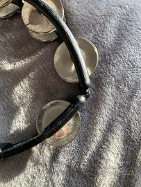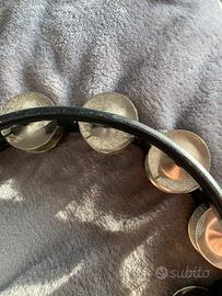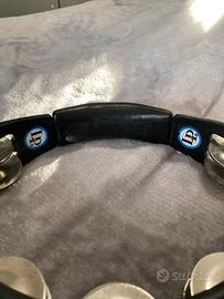 Cembalo LP Latin Percussion LP150, ideale per aggiungere un tocco ritmico alla tua musica. - Struttura in pelle nera. - Jingle in metallo. - Marchio LP Latin Percussion visibile.
