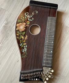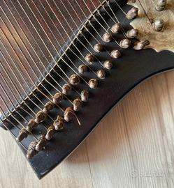 Cetra 29 corde e chitarra 5 corde. Tutto funzionante. Segni di usura sul retro. Si può appendere.