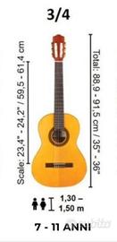 Chitarra acustica classica taglia 3/4 per ragazzo/a, utilizzata solo per le ore si studio dello strumento; custodia compresa nel prezzo .