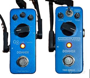Chitarra 3 effetti Donner con alimentatore e cavi Perfettamente funzionanti, confezioni originali, pari al nuovo. ***Possibile vendita singoli effetti*** - Dynamic Wah - Echo Square - Ultimate Comp - Alimentatore e cavi inclusi.