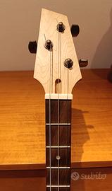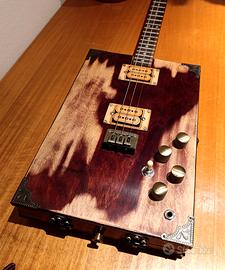 Cigar Box Guitar artigianale 3 corde – doppio humbucker, anima blues/rock Descrizione: Vendo cigar box guitar interamente artigianale, costruita a mano partendo da una scatola da backgammon e trasformata in uno strumento unico, sia esteticamente che sonoramente. Non è la classica 3 corde “semplice”: qui siamo su qualcosa di molto più completo e versatile. Il manico in acero, bello pieno e solido (più spesso di un profilo C), offre una sensazione molto comoda soprattutto per chi suona slide o cerca più sostanza sotto le dita. È dotato di truss rod e tastiera in palissandro con tasti jumbo. La parte elettronica la rende davvero versatile: due humbucker (ponte e manico) selettore a 3 vie 4 controlli completi Puoi passare da suoni caldi e pieni a timbri più aggressivi senza problemi. Il ponte con sellette regolabili in ottone anticato e il capotasto in osso garantiscono stabilità e buona intonazione, mentre le meccaniche in ottone completano l’estetica. La cassa, ricavata da una scatola da backgammon con finitura relic, le dà un carattere unico: ogni segno contribuisce al suo look vissuto. Diapason da circa 64,3 cm (scala tipo elettrica), quindi immediata da suonare anche per chi arriva dalla chitarra tradizionale. Regge tranquillamente diverse accordature, perfetta per blues, slide, rock e sperimentazione. Spedizione a carico dell’acquirente con pacco tracciabile tramite poste italiane, possibile consegna a mano su Firenze o Empoli.