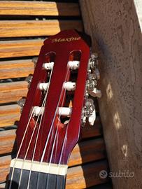 Chitarra MAXINE color legno naturale , Suona molto bene ha corde nuove appena montate , No permute no passatempo , pochi euro vi regaleranno momenti magici e una ventata di emozioni (oggi con questa cifra non si fa neanche un po' di benzina ! ) Prezzo della chitarra in negozio sarebbe 99 euro. Posso spedire con costi imballaggio e posta a carico di acquirente .