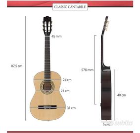 chitarra classica per principianti, misura 1/2, con custodia, colore rosso