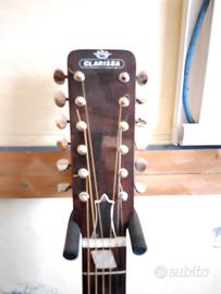 Chitarra acustica Clarissa a 12 corde, modello vintage anni '70, Pickup aggiunto al manico e controlli cablati