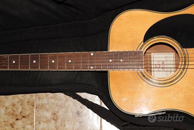 Vendo chitarra acustica 6 corde con adattatore per amplificatore e la sua borsa. nella parte anteriore c'è una piccola sverniciatura visibile nel ultima foto