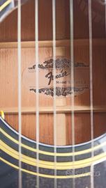 chitarra acustica amplificata la brea con custodia rigida tenuta in buonissime condizioni. l'adesivo che tiene i fili ancorati alla cassa ha perso adesività.