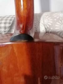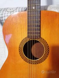Chitarra acustica, made in Italy, marca Ariston, con segno nella parte posteriore (come da foto) e fermacorde con cromatura usurata. Ottima per dilettanti