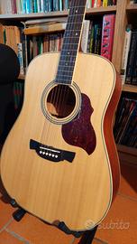 Chitarra acustica Crafter, di ottima qualità, usata poco, presenta ancora la pellicola protettiva sul battipenna come si vede dalle foto.