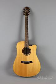 Chitarra Acustica Crafter Elettrificata Chitarra Elettroacustica. Tavola in Abete, Fondo e Fasce in Mogano, Manico in Mogano, Tastiera in Palissandro, Ponte in Palissandro. Spalla mancante Preamp Crafter CR-T NV. Meccaniche cromate. Colore: Natural