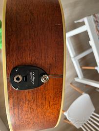 Vendo chitarra acustica elettrificata crafter con custodia morbida imbottita, monta corde elixir 11-52, cambiate da 3 settimane, quindi praticamente nuove. Manico intarsiato. Presenta solo 2 piccole imperfezioni a lato, vicino all'ingresso jack (si vedono in foto). L'unico difetto è che l'accordatore (integrato) funziona un po' a momenti, ma il resto dell'elettronica è perfetto. Chitarra molto bella, sia di suono che esteticamente, e pronta all'uso. La chitarra è stata revisionata frequentemente da liutaio. Vendo in zona Bassano del Grappa/Vicenza. Disponibile anche alla spedizione (a carico del compratore)