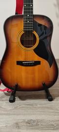 chitarra acustica adatta anche per principianti, buone condizioni, bel suono, vendo per realizzo, compresi nel prezzo trovate, la custodia imbottita, cavo jack per collegarla ad un impianto di amplificazione, plettri