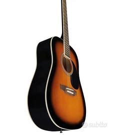 Chitarra acustica con forma Dreadnought in colorazione Sunburst di casa Spencer by Eko. È costruita con Top in Abete, fasce e fondo in Tiglio, manico in Okoumè e tastiera in South American Roupanà. Una chitarra acustica dal costo contenuto, perfetta per gli studenti e per chi decide di iniziare lo studio della chitarra con uno strumento affidabile e performante. La chitarra viene fornita con un corso per principianti realizzato da Massimo Varini.