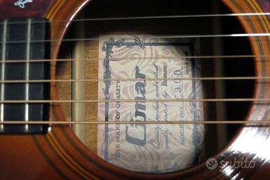 Vendo chitarra acustica elettrificata Cimar C300. Tipo dreadnought a 6 corde, prodotta in Giappone da Hoshino, equivalente ai modelli Ibanez di quel periodo (circa 1978). Finitura scura, con fondo, fasce e manico in mogano, tastiera e ponte in palissandro. 20 tasti, scala da 25.5", larghezza al capotasto (nude width) di 43 mm. Amplificata con Fishman Presys 301 Blend, con microfono interno, che in aggiunta al piezo, offre un suono più naturale. Ideale per concerti, con amplificazioni di ogni tipo! Selletta e ponte in Tusk, per una resa più brillante, meccaniche sostituite con Taylor di alta precisione. Qualche piccola scalfittura, ma che non pregiudica il grande suono. Regalo chiave per truss-rod originale e borsa morbida imbottita di qualità di 10 mm di spessore, con ben 6 tasche (4 esterne e 2 interne)! NON SPEDISCO, perché va provata con ampli e senza, per apprezzarne il suono caldo, potente e brillante. A richiesta, video dimostrativi. Roma nord.