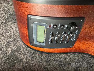 Chitarra acustica elettrificata, Jumbo con cutaway (di modo da imitare la comodità e la maneggevolezza di una chitarra elettrica), marca Crafter, 6 corde, mai utilizzata, la pellicola avcolge ancora l’accordatore automatico.
