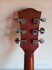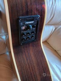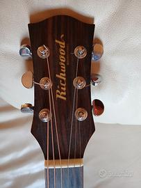 Vendo per esubero bellissima chitarra acustica elettrificata della casa olandese RICHWOOD modello G-65-CEVA, Master Series, modello Grand Auditorium, con spalla mancante. Colore Natural Gloss. Tutte le chitarre Richwood della Serie Master sono costruite a mano con legni pregiati selezionati, appositamente indicato nel cartiglio che si trova all'interno della cassa armonica, come in foto. Top in abete rosso massello Sitka, corpo, fondo e fasce in palissandro, manico in mogano, tastiera in palissandro, ponte in ebano, corpo con intagli a triplo filetto, binding color crema, finitura lucida. Meccaniche Der Jung deluxe chrome. Sistema di amplificazione Fishman PRESYS 201. Truss-rod a doppia azione. Capotasto e traversino in osso. Lunghezza della scala: 650 mm. Larghezza capotasto: 43,1 mm. Larghezza traversino: 71,7 mm. Finitura del corpo lucida vintage. Finitura del manico satinata. Set up professionale. Condizioni eccellenti. Rapporto qualità/prezzo imbattibile.