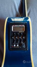 Vendo chitarra acustica elettrificata con spalla mancante, corpo più sottile rispetto a una normale chitarra acustica. Chitarra che offre massimo comfort e suonabilità.