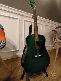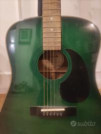chitarra modello Samick acustica elettrificata con tracolla imbottita verde e custodia morbida.