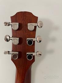 chitarra acustica elettrificata a scala corta tobacco brown sunburst + bag usata ma come nuova caratteristiche top: abete sitka massello fondo e fasce: mogano massello raggio: 406mm (16) tastiera: palissandro intarsi: dot tasti: 20 scala: 600mm (23.5) meccaniche: pressofuso cromate ponte: palissandro materiale capotasto e sella: urea elettronica: pickup piezoelettrico srt zero-impact lunghezza del body: 450mm (17.71) profondit del body: inferiore 105mm, superiore 85mm custodia: gig bag inclusa finitura: tobacco brown sunburst