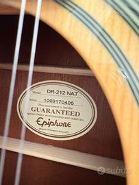 Vendo chitarra acustica Epiphone DR-212 Colore Natural 12 corde. Come nuova, nessun segno di usura. Insieme la custodia morbida.