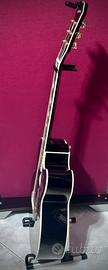 🎶 Epiphone J-200 EC Studio Black - PARI AL NUOVO - Top Massello. 🔔 Prezzo non trattabile - Astenersi dilettanti “Lowballer” 🎶 CHITARRA ACUSTICA ELETTRIFICATA CUTAWAY NERA La J-200 EC (precedentemente chiamata EJ-200SCE) rende omaggio al re delle flat top: la classica Gibson SJ-200. Questa Epiphone ispirata a Gibson presenta un corpo Super Jumbo cutaway con fondo e fasce in acero selezionato, top in abete massello per un timbro eccezionale, un manico in acero con un profilo SlimTaper D, tastiera in pau ferro, 20 tasti medium jumbo, e intarsi di alta classe con corone in madreperla. Il ponte ha la leggendaria forma Moustache e il battipenna presenta l'iconica grafica J-200. Viene fornito con un sistema Fishman Sonicore under-saddle e preamplificatore Presys con accordatore incorporato. Caratteristiche Top: Abete massello Body: Acero Manico: Acero Tastiera: Pau Ferro Tasti: 20 Medium Jumbo Scala: 648mm (25.5") Capotasto: 42,67mm (1.68") Ponte: Palissandro con sella in osso sintetico Intarsi: Crown Elettronica: Fishman Sonicore Controlli: Fishman Presys con controllo del volume, switch di fase e contour e accordatore incorporato con display LED Uscite: Jack 1/4" Meccaniche: Grover Rotomatic 18:1 Finitura: Nera 🎶 L'articolo è stato acquistato presso rivenditore e utilizzato complessivamente per massimo tre brevi sessioni. È praticamente un oggetto nuovo venduto a prezzo di usato 🎶🎶🎶