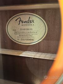 Vendo chitarra acustica fender CD-60. Prezzo trattabile Appena stata accordata. Se interessati disponibile anche custodia de Salvo in foto. Per ricerca: chitarra, chitarra acustica, fender, musica, strumenti musicali.
