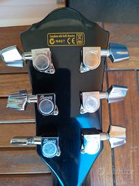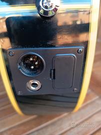 Elettrificata piezo Fishman con accordatore, Preamplificatore Ibanez SST alimentato a batteria .Uscita con Jack1/4 e XLR. Custodia imbottita compresa.La mascherina del preamplificatore é stata sostituita e ricostruita con stampante 3D in quanto l'originale si é deteriorata.