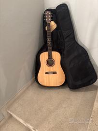 Chitarra acustica nuova con cartellino con custodia morbida imbottita questa è una chitarra acustica a cassa grande adatta a musicisti di tutti i livelli, ha un suono molto caldo ed equilibrato